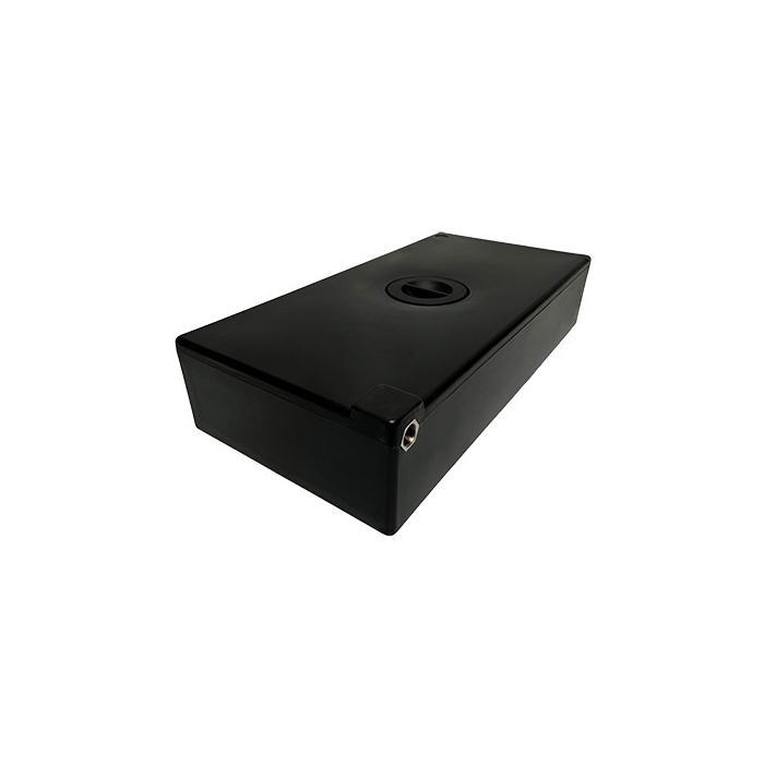 Our 40 Litre Black Underslung Tanks are suitable for storage of potable water, fresh water, waste water or any many other fluids. The Underslung Tanks have 1x 1/2" brass connection designed as filler and 3x ¾” outlets with internal bsp brass thread; one of them with a sump for maximum flexibiliy of your prefered hose connnection. The Lid has a diameter of 12 cm at the bottom and is unvented. Delivered with 2x small brass Vents on the top side if the underslung Tank. The wall thickness of the Tank is ca. 4 mm. This generic underslung Tank with total height incl. sump of 17 cm can be installed under many types of vehicles, campers and caravans with lid opening on the bottom. For more information check the technical drawing.